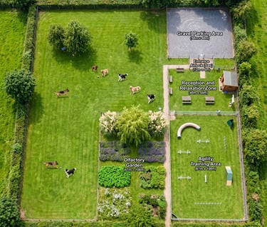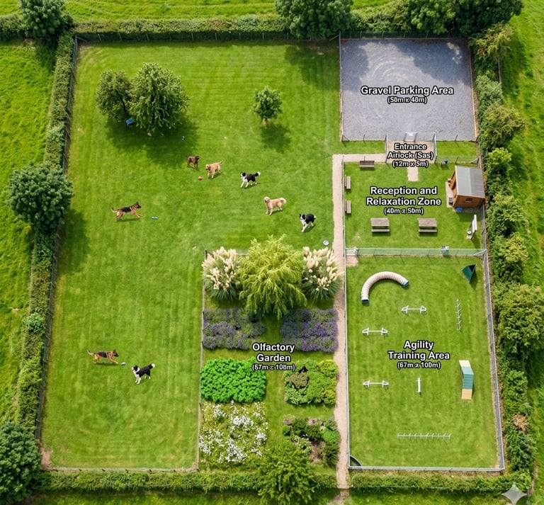 Un espace sensoriel et ludique unique, pensé pour le bien-être de votre chien. Ici, on ne fait pas que courir, on explore, on apprend et on partage.